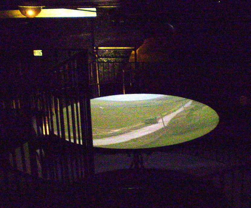 Synopsis: image formed within a darkroom.Source: Wikimedia Commons - Code6840.URL: http://upload.wikimedia.org/wikipedia/commons/c/c4/Camara-obscura-image.JPG